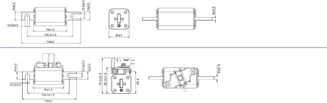 • 1250Vac/1000Vdc 100~400A UL IR 100kA size 1*  (43x43mm) ESH3066~3073 (ESH3055~3062)